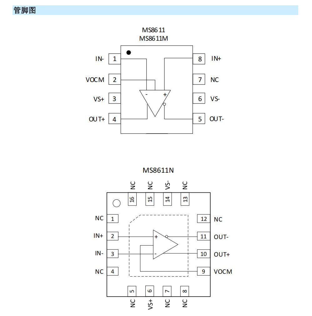 MS8611 提供 SOP8、MSOP8、QFN16 三种封装,工作温度范围为-40℃ 至+125℃。