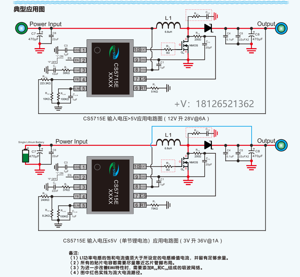 CS5715E是一款适用于2.7V~26V宽工作电压输入应用场景的升压型开关控制器,非常适合单节锂电池的应用。该芯片内置栅极驱动引脚,用于驱动外部NMOS,其误差放大器的同相输入端接入1.2V基准电压,开关频率可通过外部电阻编程设置。CS5715E采样电感峰值电流限,省去了外部CS与地之间的功率电阻,而是直接采样NMOS的漏极,并通过ILIM引脚与地之间的普通电阻实现编程。简化了外围设计,减少了系统的发热源。