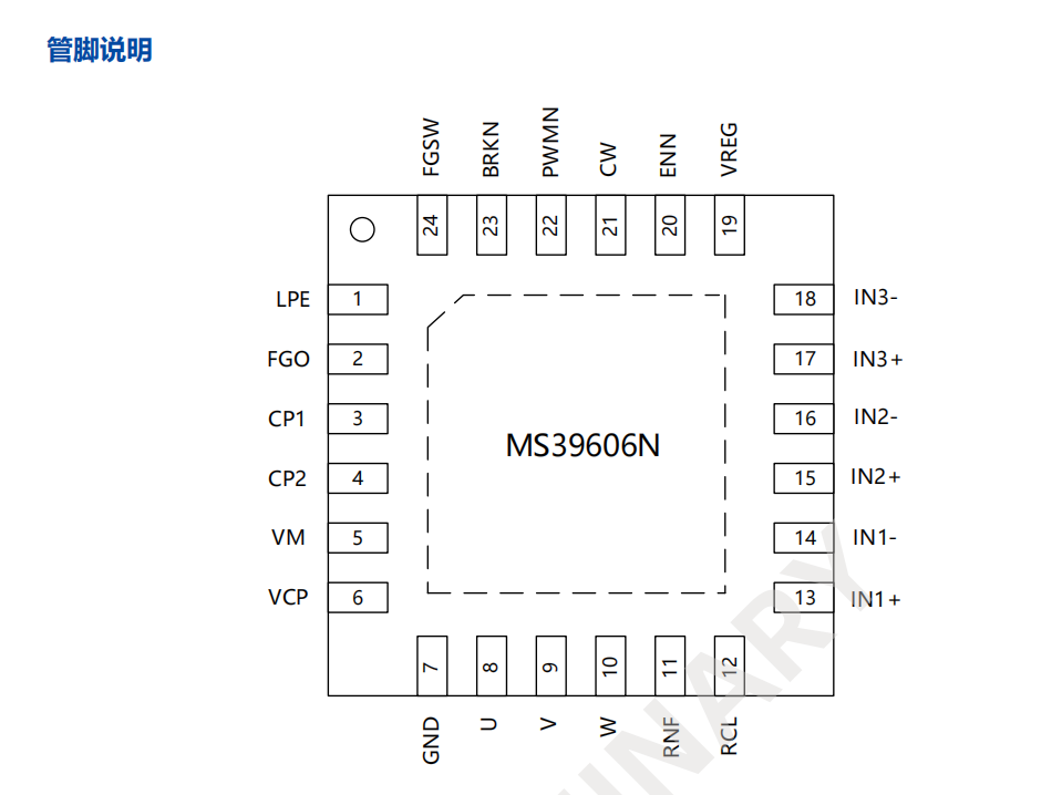 MS39606 是一款三相无刷直流电机驱动芯片,最大极限电压可达 33V,额定输出电流 2A。
