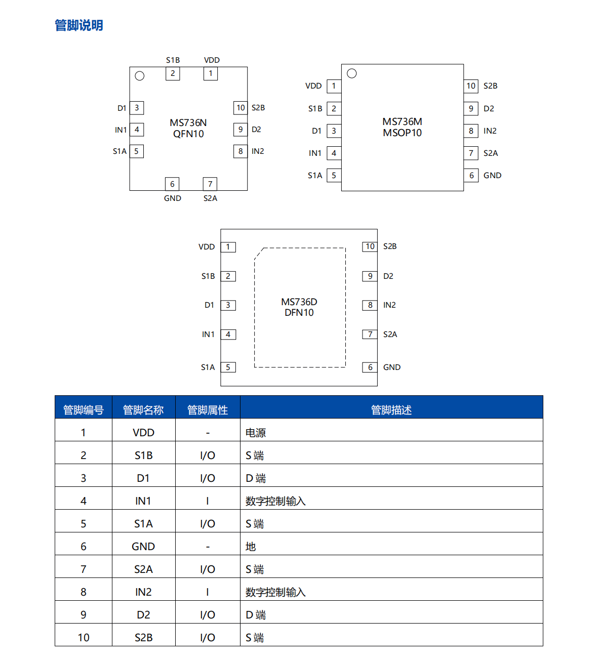 MS736是一款单芯片CMOS双路可选择开关,具有低功耗、高开关速度、低导通电阻、低漏电和高带宽特性。其工作电压范围是1.8V到5.5V,可以广泛应用在电池供电的仪器仪表、新一代的模数转换和数模转换系统中。可兼容SGM3005/LTC5223/RS2105。